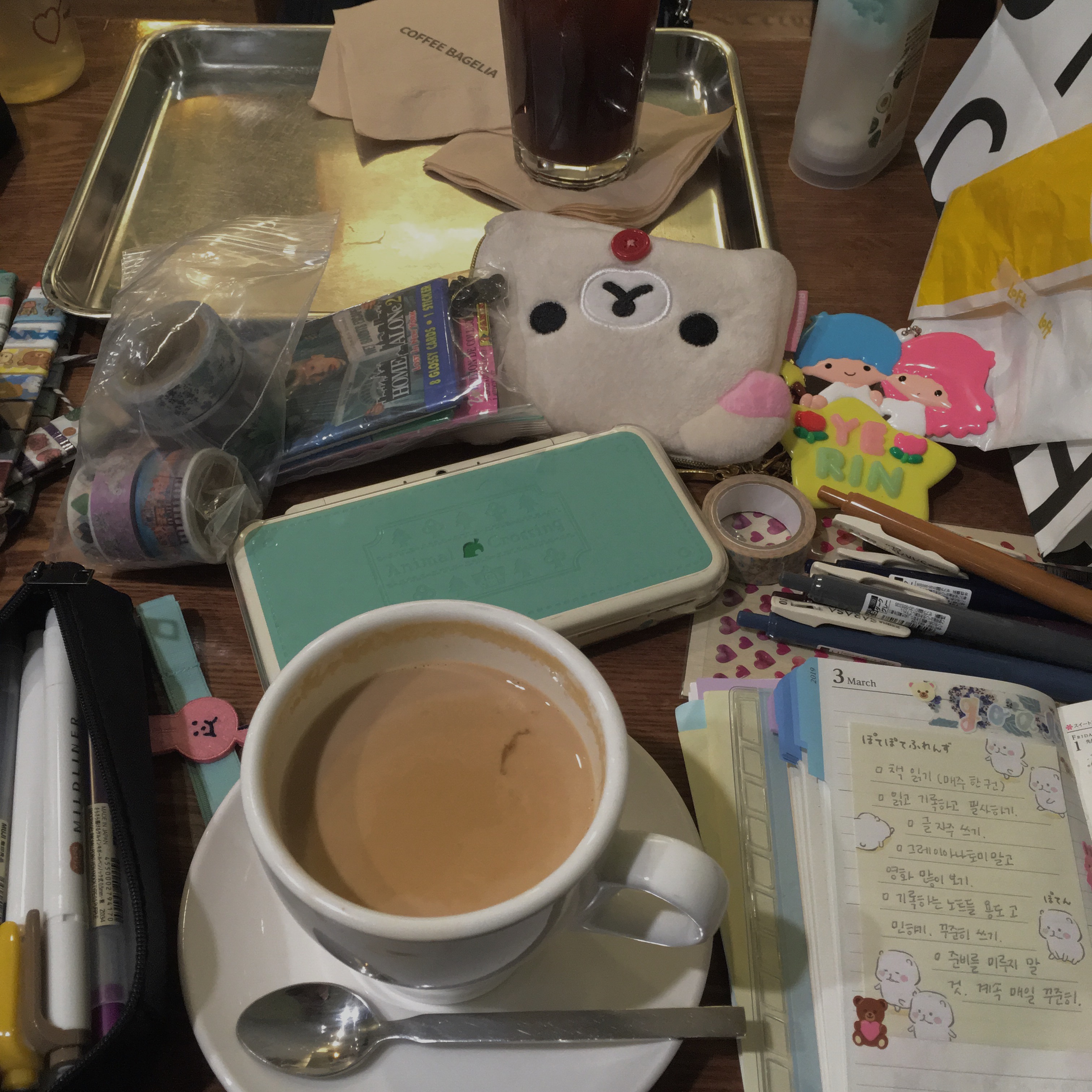 베이글리아 갔던 사진에서행복의 절정을 느꼈다. 올해도 같은 브랜드의 다이어리를 샀다.2020년 3월 초, 지금까지 다이어리 대충 5개 째.내년엔 여념없이 또 여기 다이어리를 사자.써본것 중 가장 잘 쓰니까 낫다고 생각해뭔가 붙이고 꾸미는것도 귀엽고 잘 어울려
